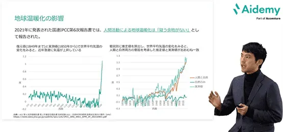 受講生の学習進捗を可視化できるため、より積極的に学習するGXへの関心が高い人材を見つけることができます。Aidemy GXでは、GXプロジェクトを牽引する将来のリーダー人材を見つけるツールとしてもお役立ていただけます。
